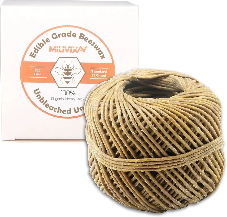 This 200 ft spool of 1.0mm standard hemp wick features natural edible-grade beeswax coating for clean, slow, smokeless burning. 100% organic, unbleached, and un-dyed – eco-friendly choice for natural candle making. Beeswax helps wick stand straight and reduces mushrooming. Easy to cut and center in jars. Perfect for soy, beeswax, or coconut wax projects – promotes even burn and minimal soot for high-quality homemade candles.